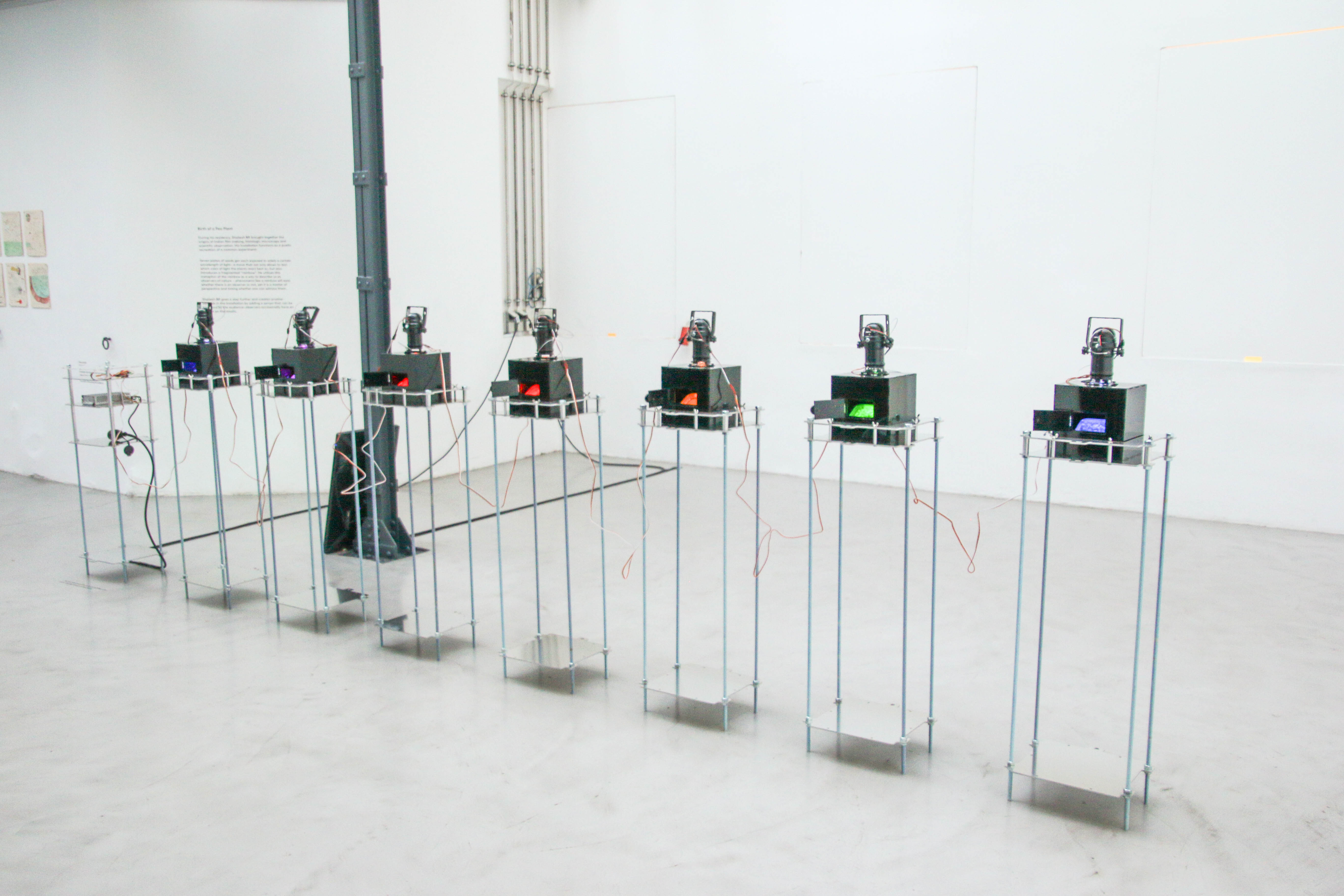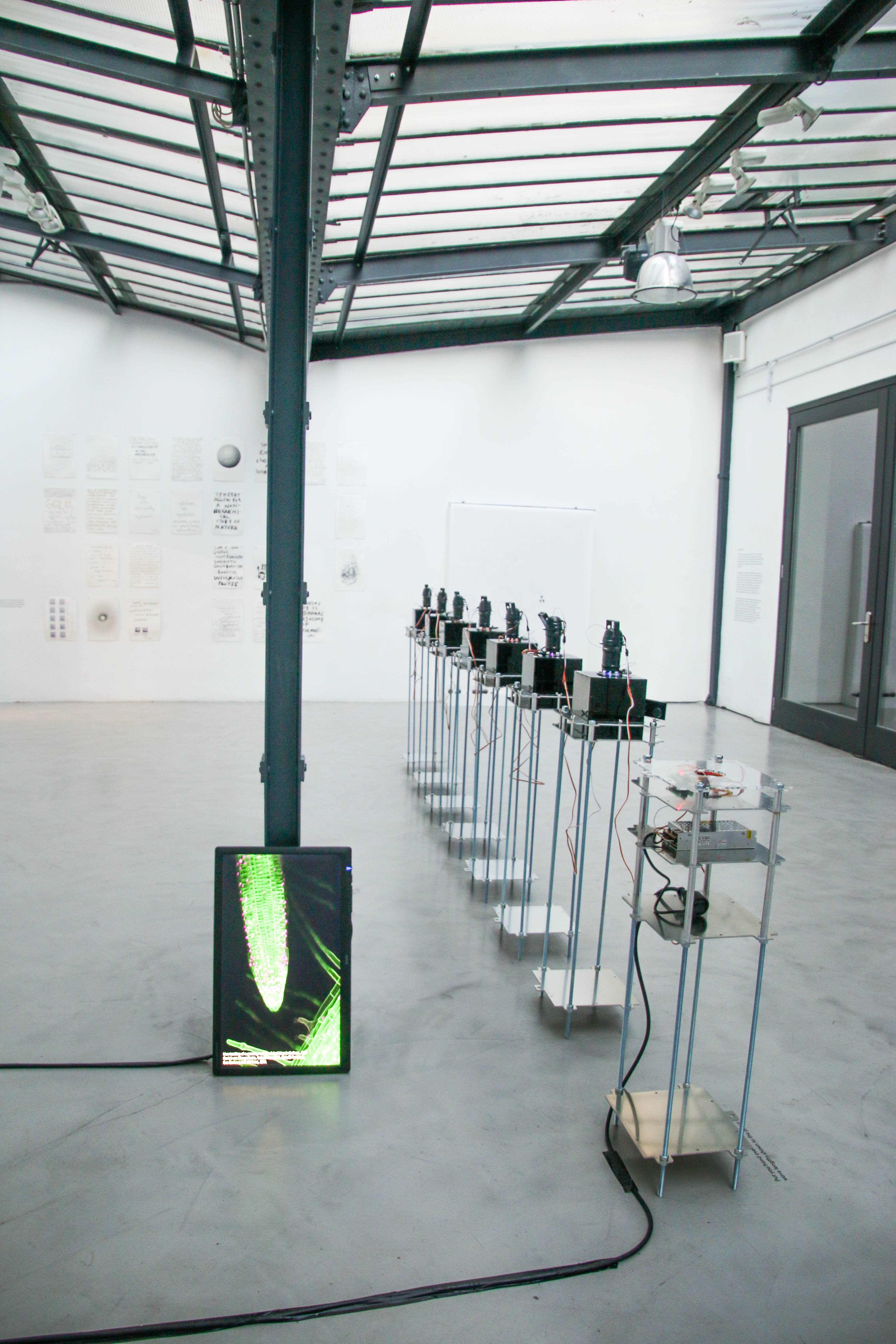 In collaboration with Sean Scanlan we worked on the realization of the large LED installation. Loosely mimicking old stock tickers, we built 12 LED matrix panels and programmed them to display capitalistic vices identified by CohStra.